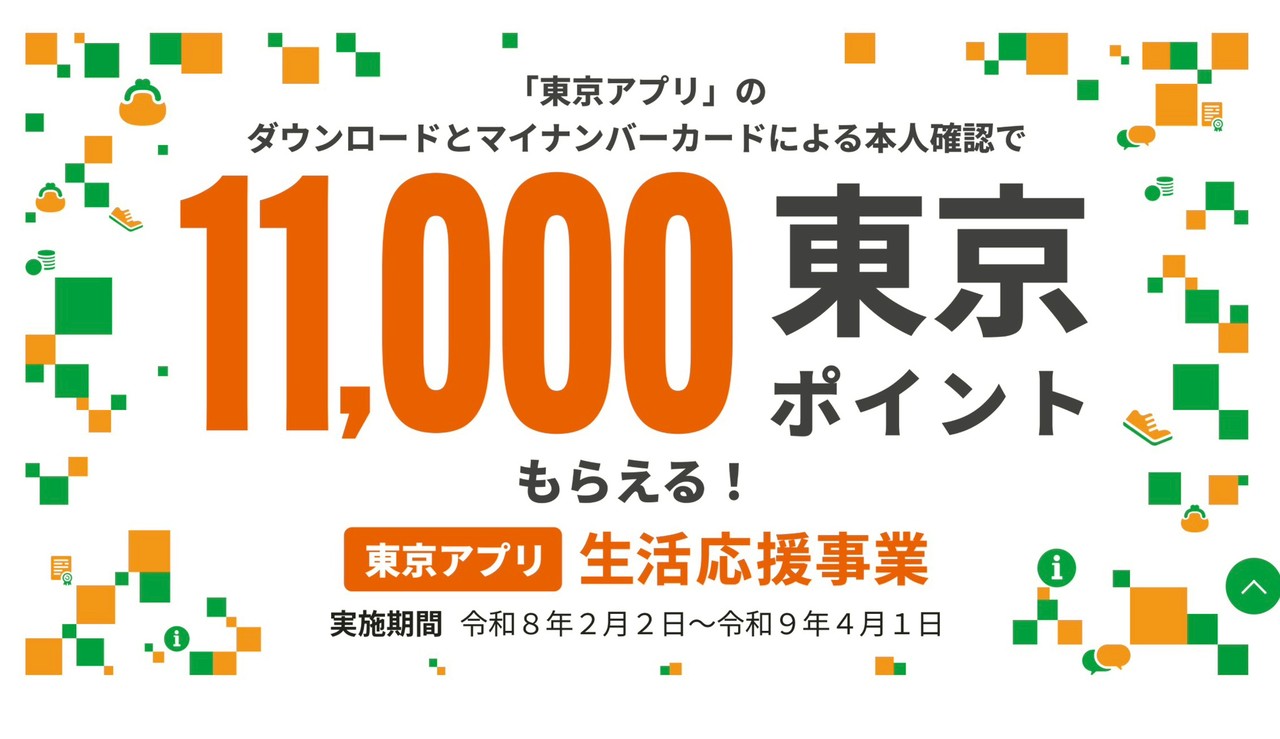 東京アプリの普及促進と物価高騰対策として東京アプリを活用し、マイナンバーカードによる本人確認を行った方に11,000東京ポイントをお届けします。